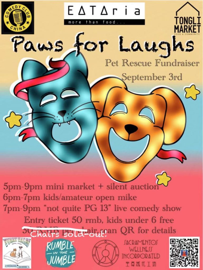 Want to join these comedian-hopefuls and help a good cause? Paws for Laughs is still recruiting more amateur performers for their open mic segment at the event. Kids of all ages can apply, subject to parental approval of course. Scan Lisa Hwang’s QR code below to sign up, and also to purchase your tickets. Pre-event entry tickets are RMB 50 each but the price will increase to RMB 70 at the door, and are available only on a first-come, first-served basis! Chair seats are also available for an additional RMB 70. All proceeds go to aiding our animal pals at Furry Tales.