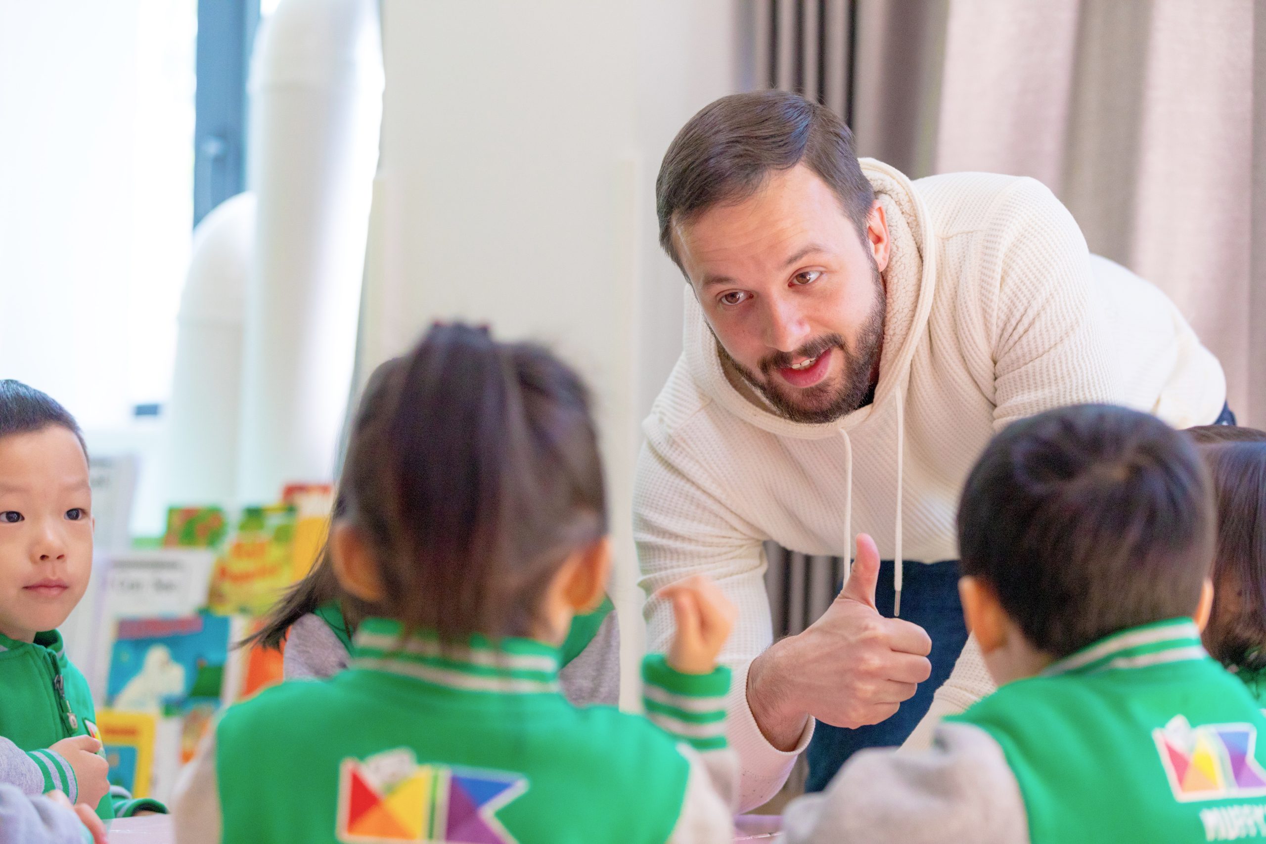 NM: We start each day with free choice/morning exercises/morning review at 8:30 am. School officially begins at 9 am. We have many normal kindergarten activities such as morning circle, outdoor recess, free choice centers, snack times, meal times, and naptimes. The key difference is our wide variety of teacher-led classes, usually 2-3 in the morning and another 2-3 in the afternoon. Each of these classes targets one of the 8 intelligences listed above and may utilize whole group or small group activities and games so that teachers can interact and engage each student in a personalized way. We try to incorporate as many active, hands-on activities as possible and use lots of dialogue and call-and-response to facilitate the natural acquisition of their second language.