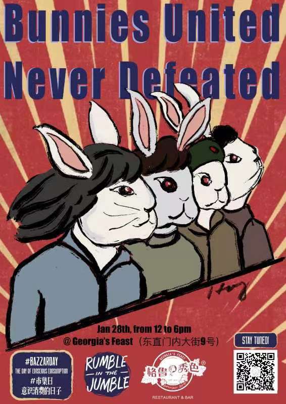 Rumble in The Jumble and Georgia’s Feast have joined forces to bring us a fun experience this Saturday, Jan 28. The “Bunnies United, Never Defeated” pop-up bazaar is inspired by a cheerful chant that moves our hearts to overcome difficulties. Scan the code on the poster for more info.