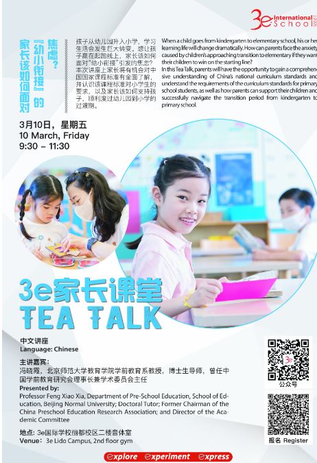 When a child goes from kindergarten to elementary school, his or her learning life will change dramatically. How can parents face the anxiety caused by their children’s approaching transition to elementary if they want their children to win on the starting line? In this Tea Talk, parents will have the opportunity to gain a comprehensive understanding of China’s national curriculum standards and understand the requirements of the curriculum standards for primary school students, as well as how parents can support their children and successfully navigate the transition period from kindergarten to primary school.