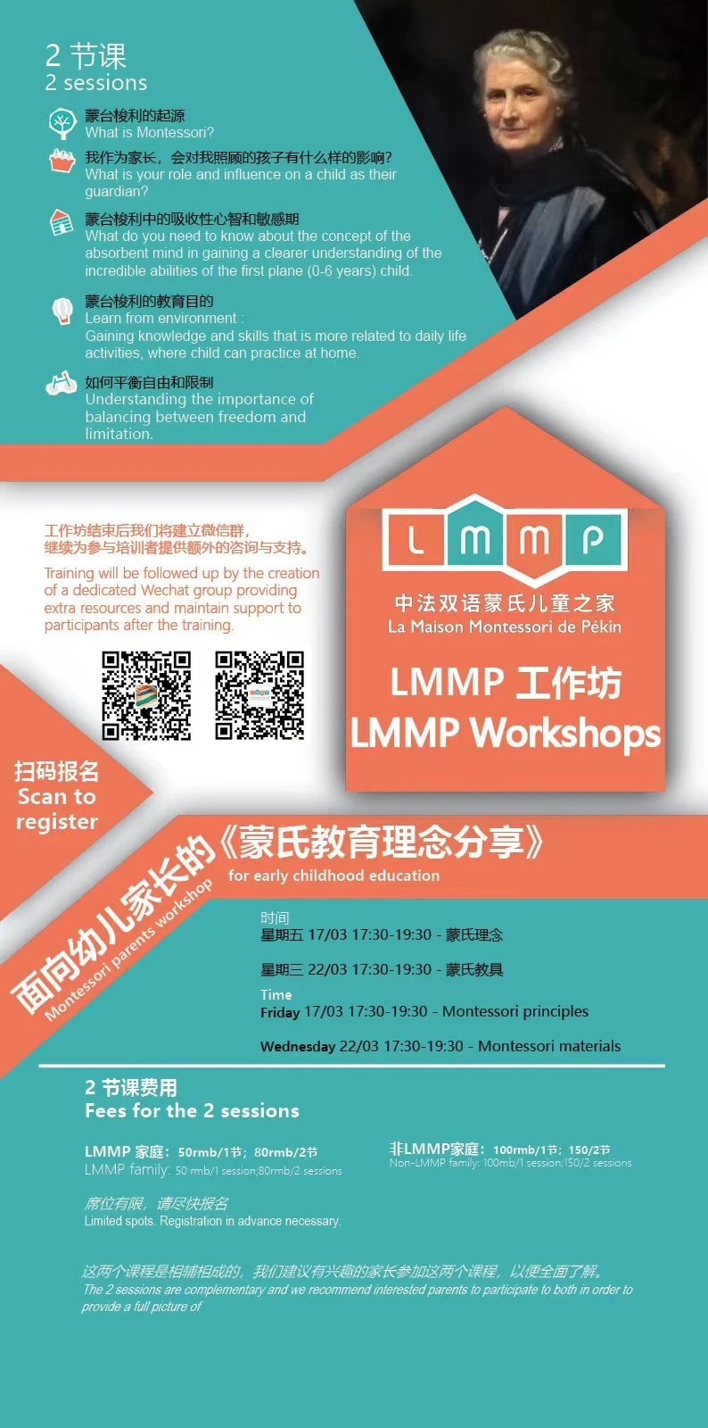 Price: RMB 50/person for one session or RMB 80/person for two sessions (LMMP families), RMB 100/person for one session or RMB 150/person for two sessions (Non-LMMP families)