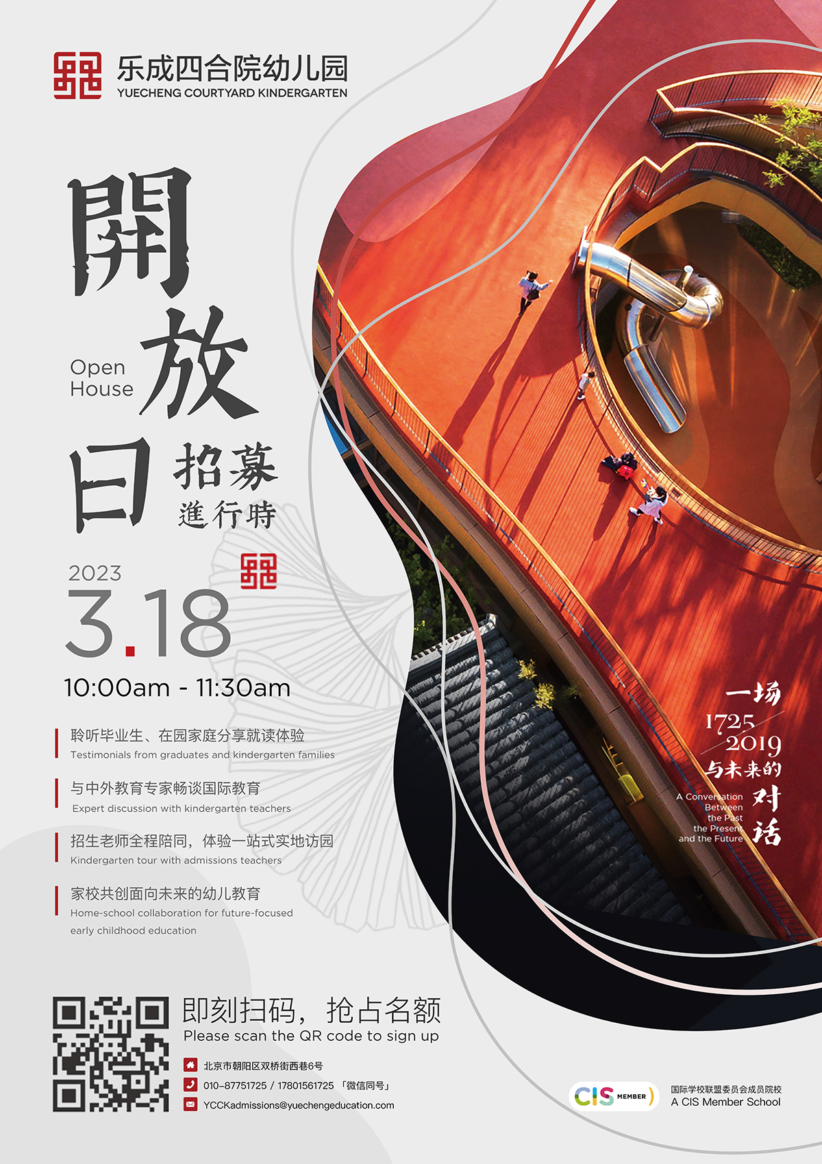 YCCK welcomes you to explore the centuries-old Courtyard Kindergarten at their open house. Families of YCCK graduates and current parents, along with their Chinese and foreign education experts, will discuss how to choose the best-fit kindergarten for your child. Enjoy a beautiful day at the historic courtyard and see how YCCK empowers every child to achieve their dreams!