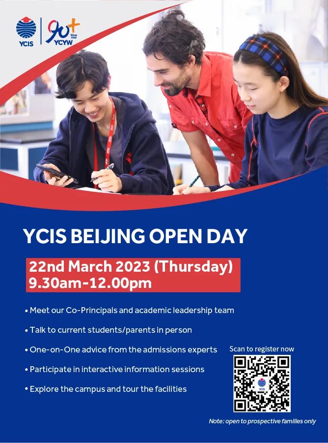 If you’re not yet a part of the YCIS community and would like to know more about the school, join the open day for prospective families on Mar 22. it will be a great opportunity to meet the co-principals and the academic leadership team, talk to current students and parents in person, get one-on-one advice from admissions experts, participate in interactive information sessions, and explore the campus and the facilities. Scan the QR code on the poster to register.