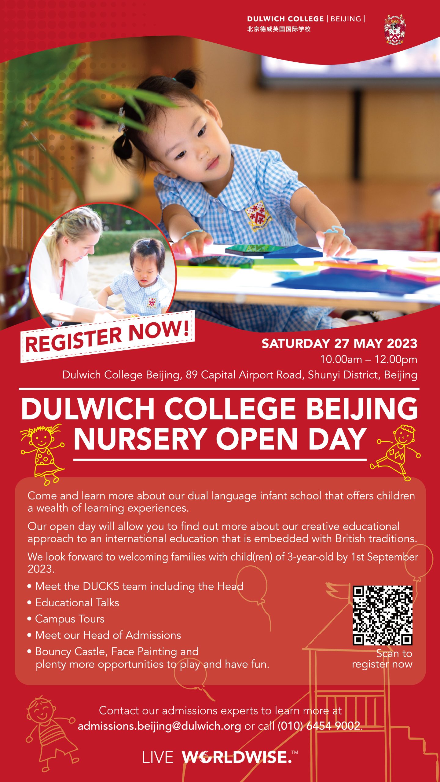 It’s never too early to nurture your child’s potential and help them be the best that they can be. For families with 3-year-olds, come join us at the Dulwich College Kindergarten (DUCKS) Dual Language Nursery Open Day on May 27 and learn more about the school’s creative and innovative approach to education.