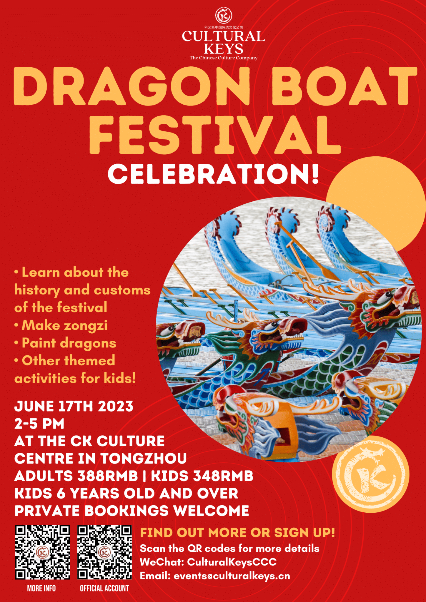Join Cultural Keys on Jun 17 to celebrate Dragon Boat Festival! At this festival celebration, you’ll learn about the history and customs of the festival. Then you’ll make zongzi (steamed sticky rice wrapped in bamboo leaves) and while the zongzi steam you’ll paint dragons under the guidance of an expert painter. There will also be other festival-themed craft activities for the kids.