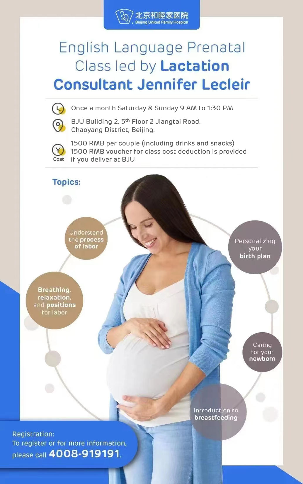 Informative prenatal classes in English for future parents at Beijing United Family Hospital are led by lactation consultant Jennifer Lecleir. The classes educate parents on researched information and prepare them for labor and for what comes after. To book your spot, email at 4008919191@ufh.com.cn or call 4008-919191.