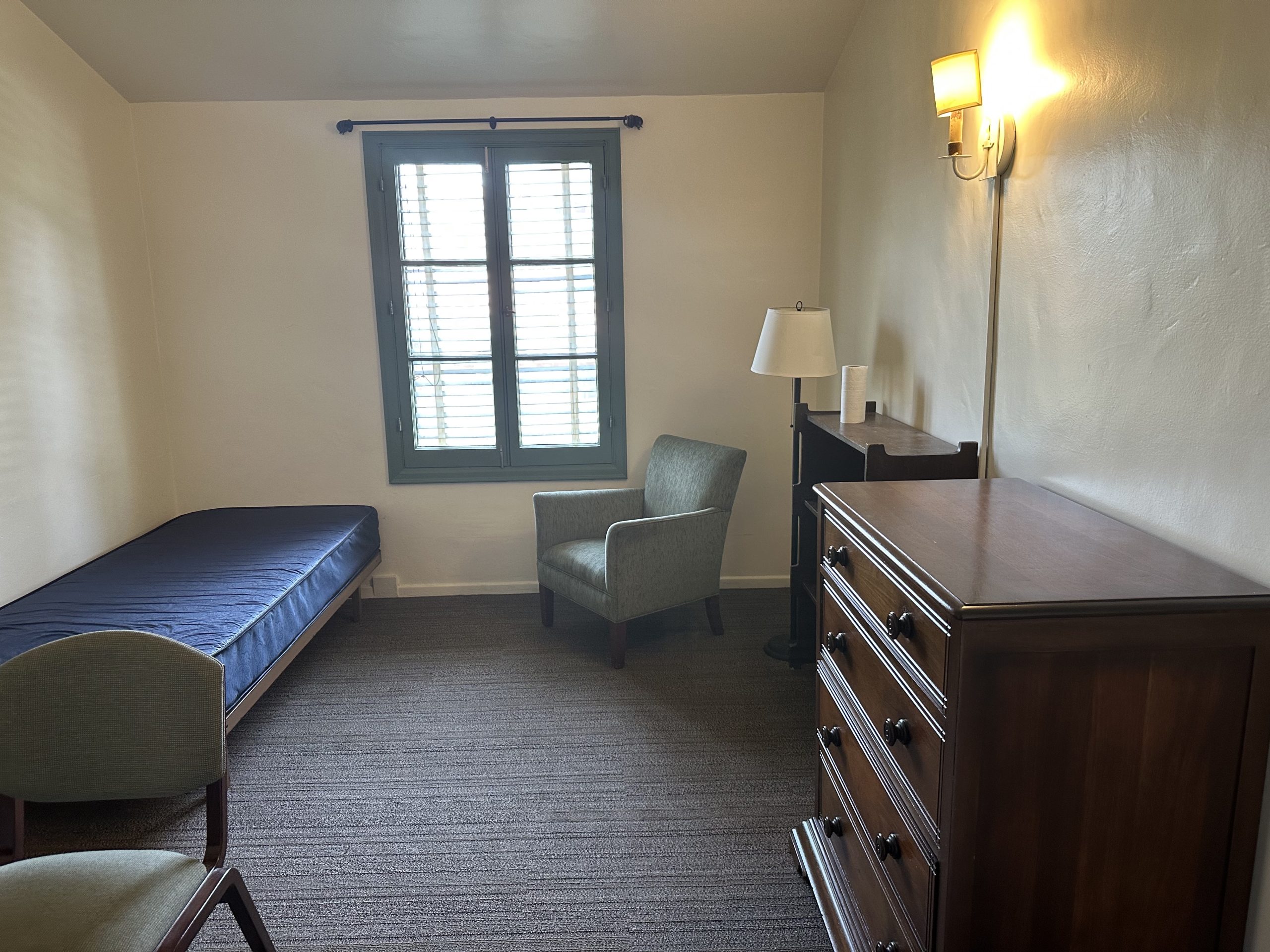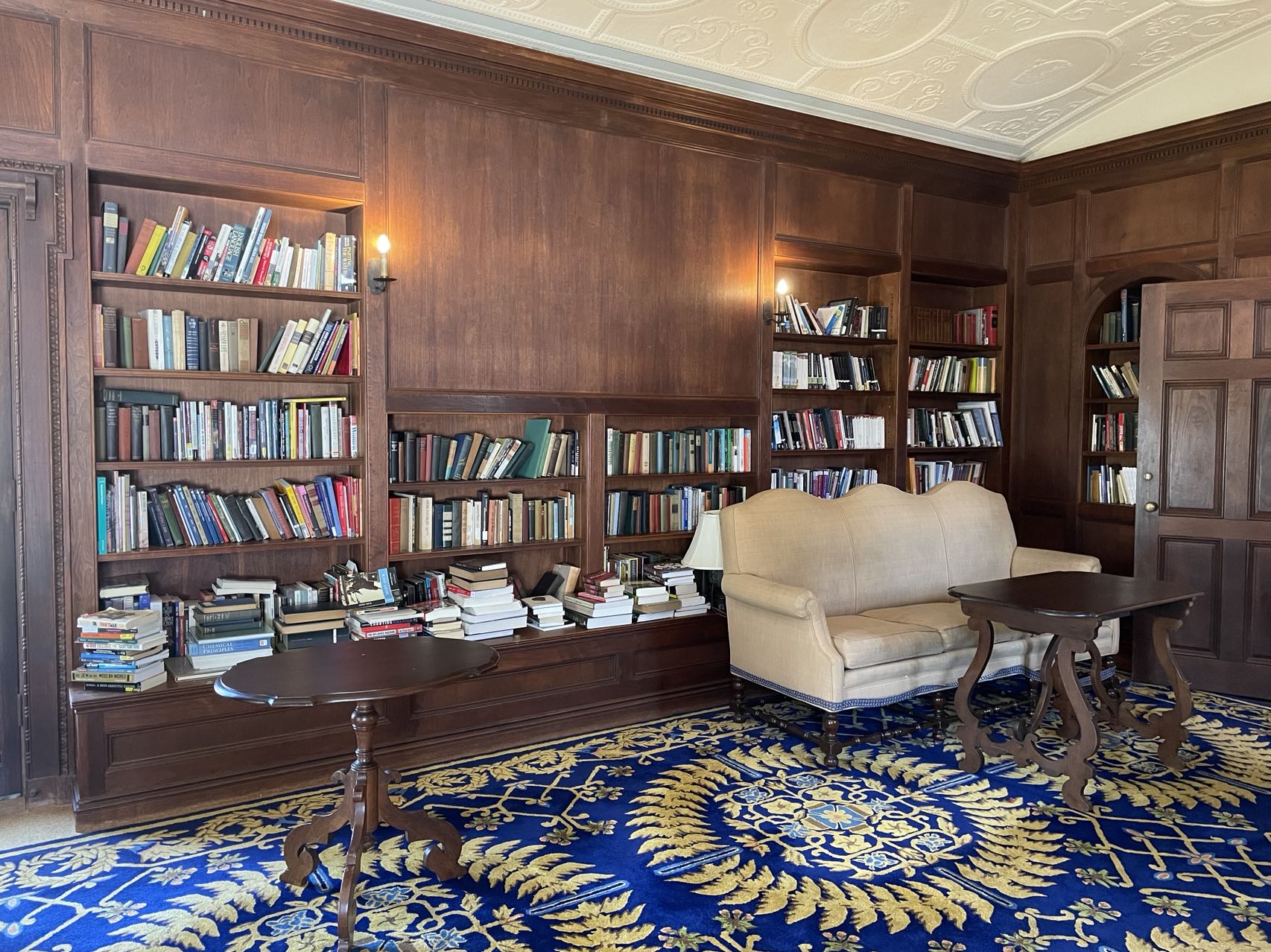 - The residential hall is modest and humble, but inside it, there is a grand piano and a drawing room full of books. A Harry-potter-themed mini library with a fireplace and an old painting of one of the founders.