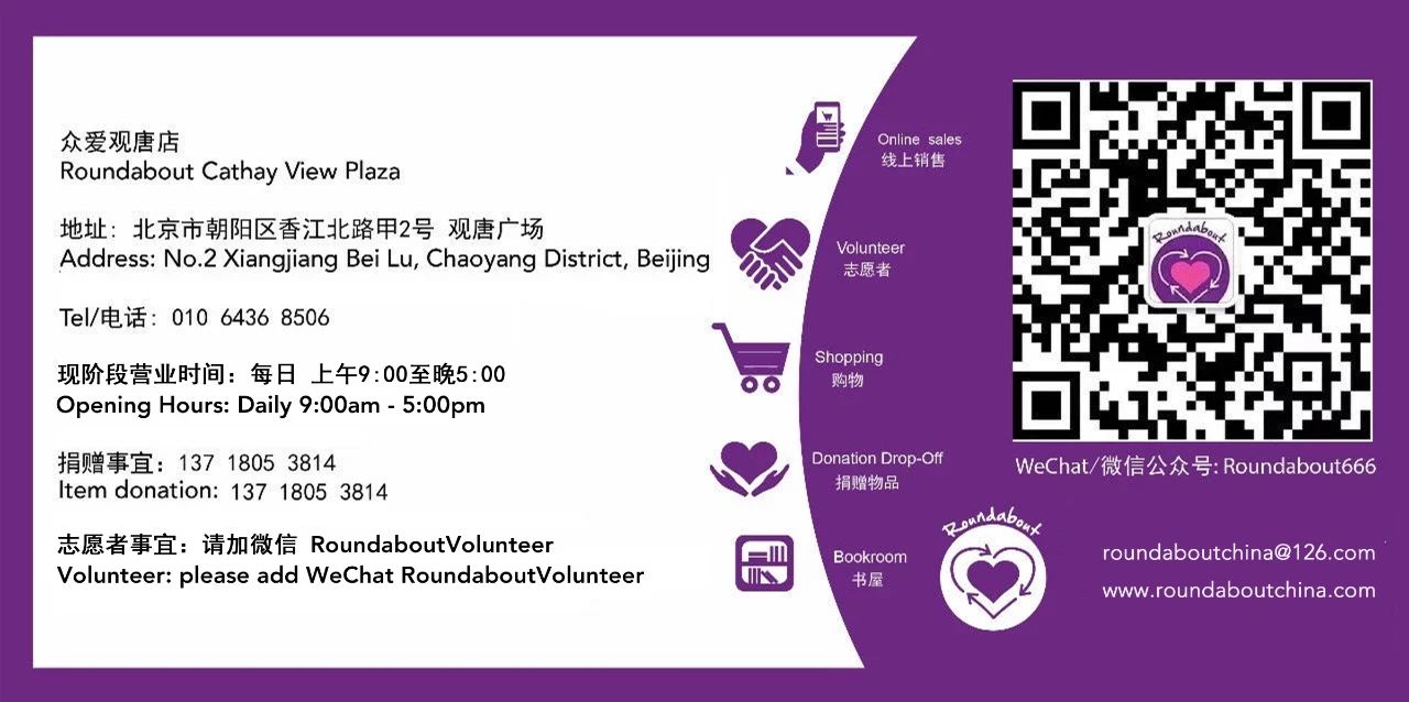 Roundabout recently received 10,000 book donations from families all over Beijing. They’ve got books in multiple languages and various genres. Most paperback books cost around RMB 10 and hardcover books around RMB 20 but there are plenty of great finds that cost as little as RMB 1!