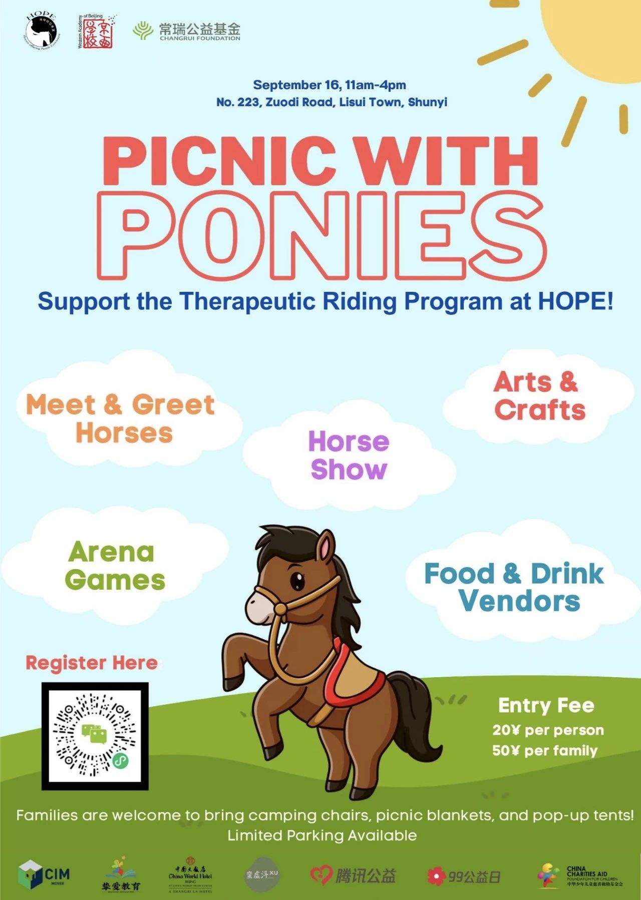 Support the Therapeutic Riding program at HOPE this Sat, Sep 16, by attending their Picnic With Ponies event, where you and your family get to spend a sunny Saturday afternoon enjoying a horse show, delicious food and drinks, as well as some super fun games and activities. The events were canceled last week due to bad weather, but this weekend promises a lot of fun. You are encouraged to bring your own tents, picnic mats, and camping chairs, and make a day out of it! Scan the QR code on the poster to register.