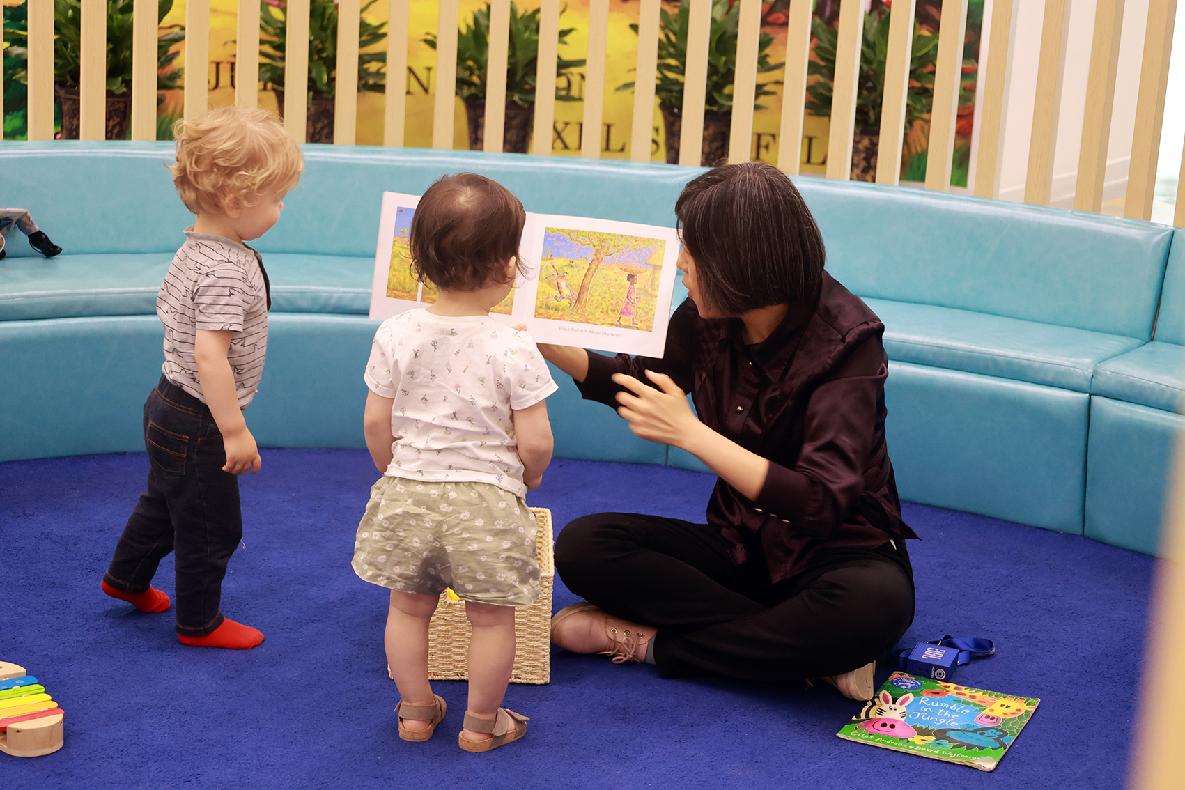 An Early Years teacher welcomes everyone and leads the kids in a friendly warmup with songs, games, and crafts. Then kids get to play with age-appropriate toys and enjoy the company of others their own age while parents spend the time bonding with their kids and socializing with other parents while enjoying snacks and drinks.