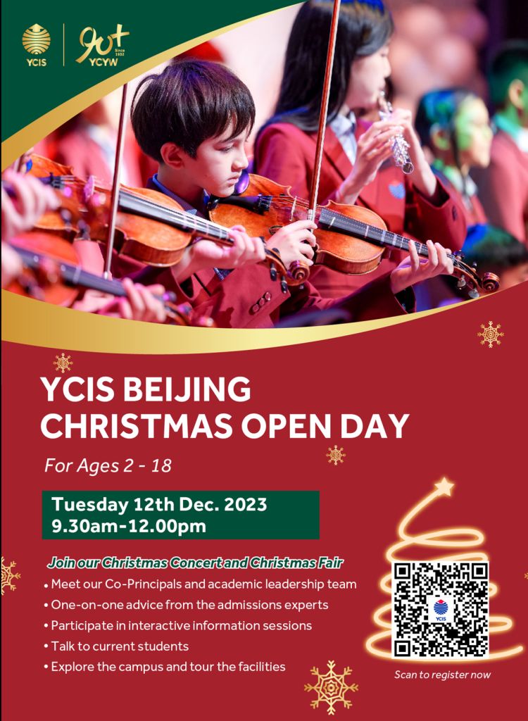 If you’re not yet a part of the Yew Chung International School of Beijing (YCIS Beijing) community and would like to know more about the school, you’re welcome to the Christmas Open Day for prospective families on Dec 12. Join the Christmas concert and Christmas fair, meet the co-principals and academic leadership team, get one-on-one advice from the admissions experts, participate in interactive information sessions, and explore the campus.