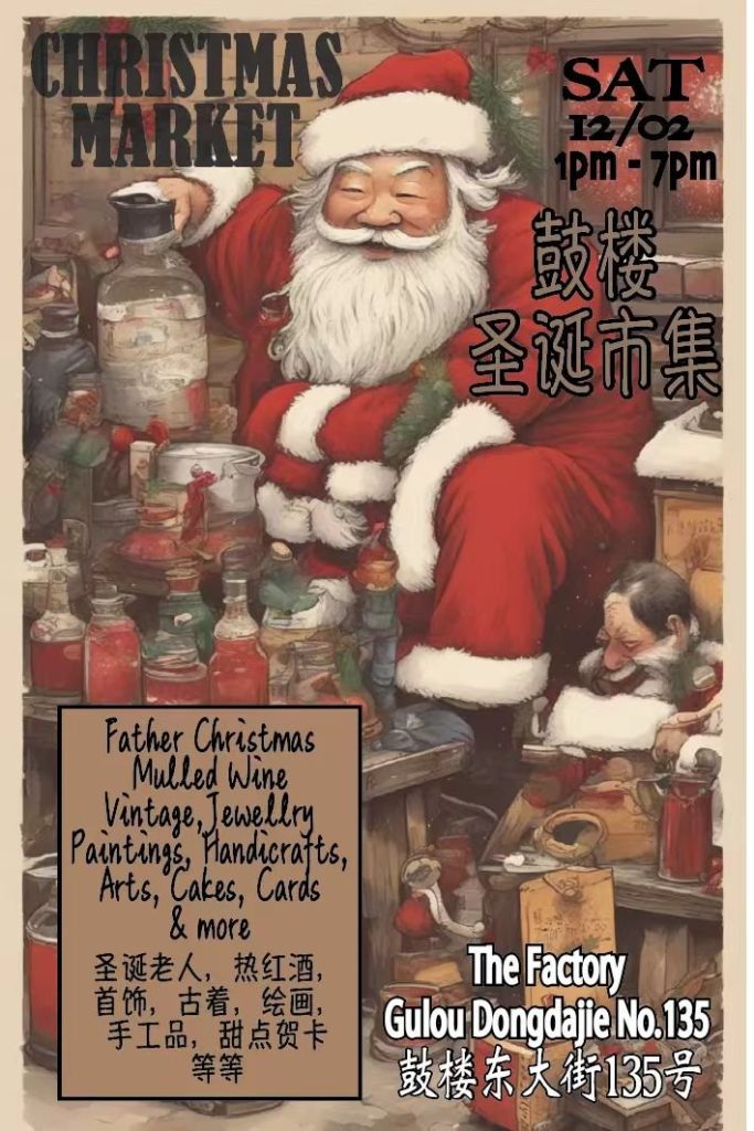 Think of this as a Christmas Market but with the spunk and charm of the art and vintage markets that thrive in the depths of the Dongcheng hutongs, with kids’ activities and a visit from “Chinese Santa Claus” for good measure. Plus, it’s all indoors and spread out over two floors, so you’ll be able to browse about, keep warm, find something you like, indulge in a bit of food and drink, and ring in Christmas and the holidays Gulou style.
