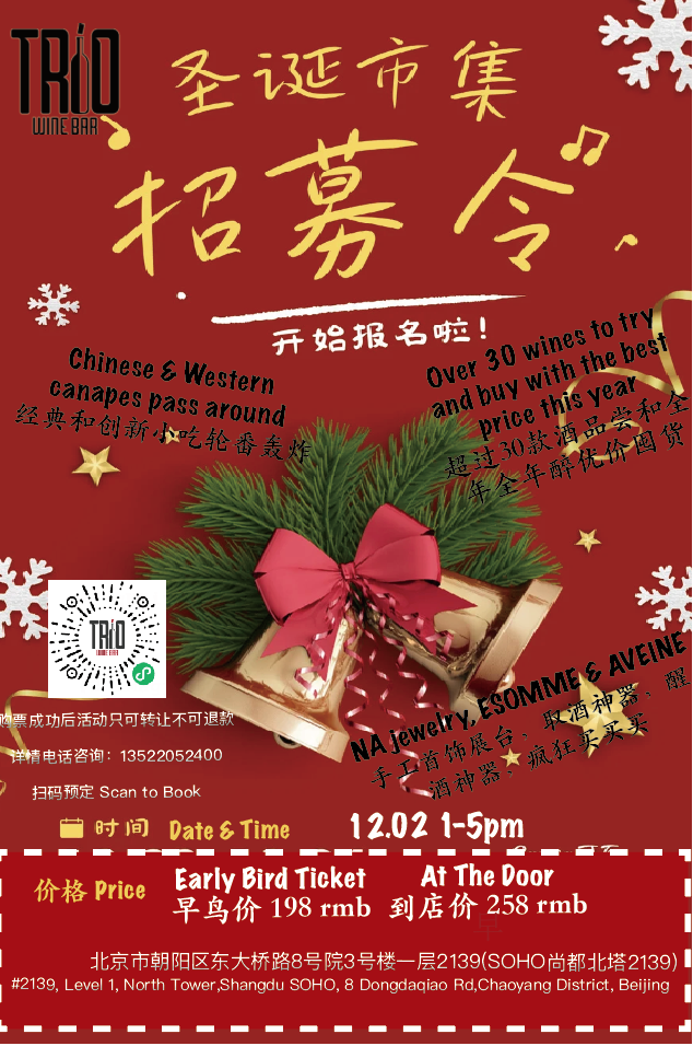 Where: Trio Wine. Level 1, North Tower, Shangdu SOHO 9 Dongdaqiao Road