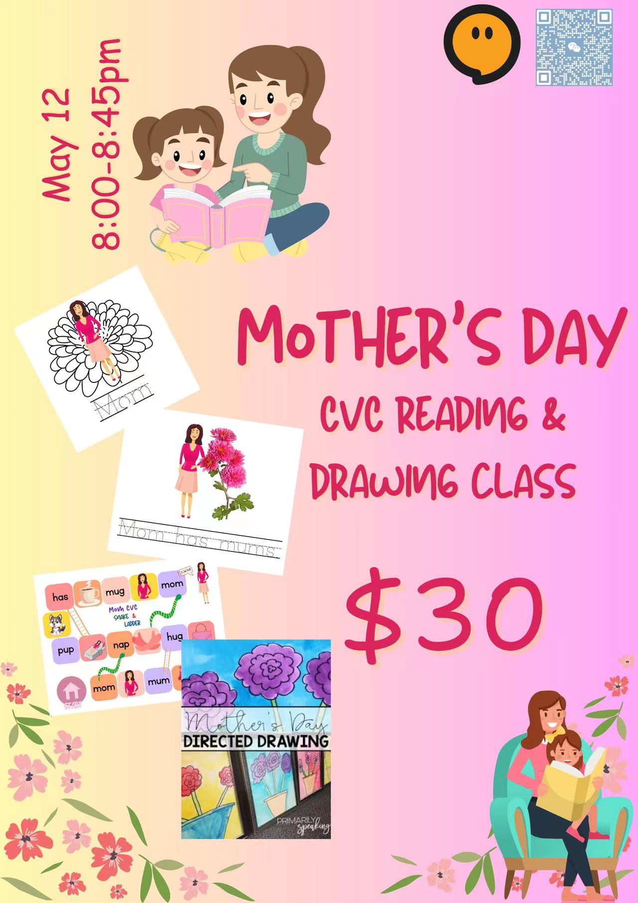 Celebrate Mother’s Day with a special online reading course for your little ones! Join this one-time event where students will dive into the magical world of reading with a decodable CVC (consonant-vowel-consonant) book. But that’s not all! In addition to honing their reading skills, participants will get creative with a directed drawing activity to make a heartfelt gift for Mom. Don’t miss out on this unique opportunity to bond with your child while they learn and create something special for the most important woman in their life. Secure your spot today! Limited availability.