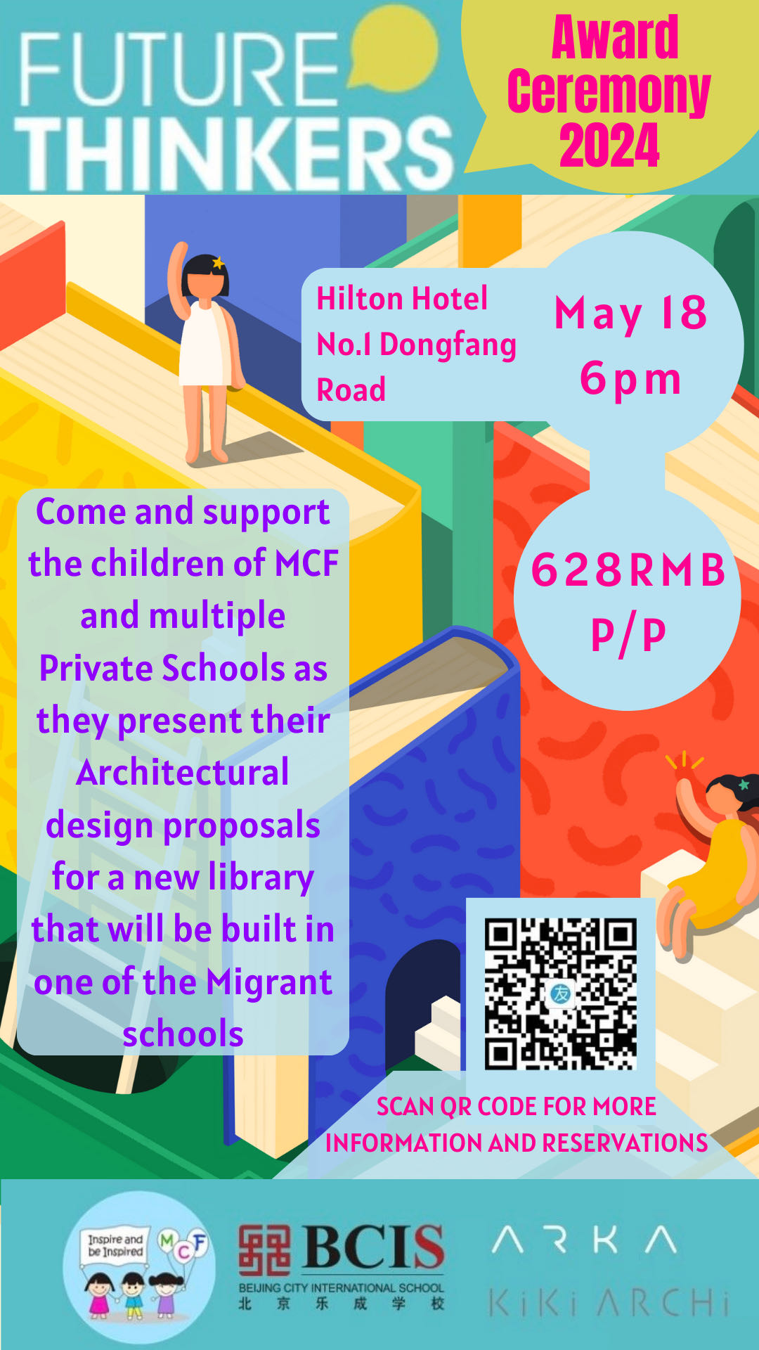 Come and support the children of MCF (Migrant Children’s Foundation) and multiple private schools as they present their architectural design proposals for a new library that will be built in one of the migrant schools.