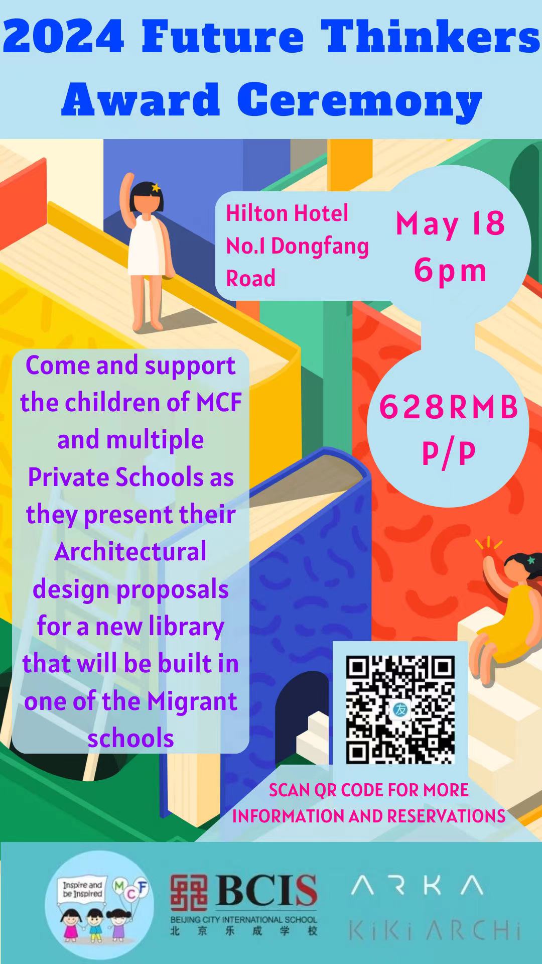 Come and support the children of MCF (Migrant Children’s Foundation) and multiple private schools as they present their architectural design proposals for a new library that will be built in one of the migrant schools.