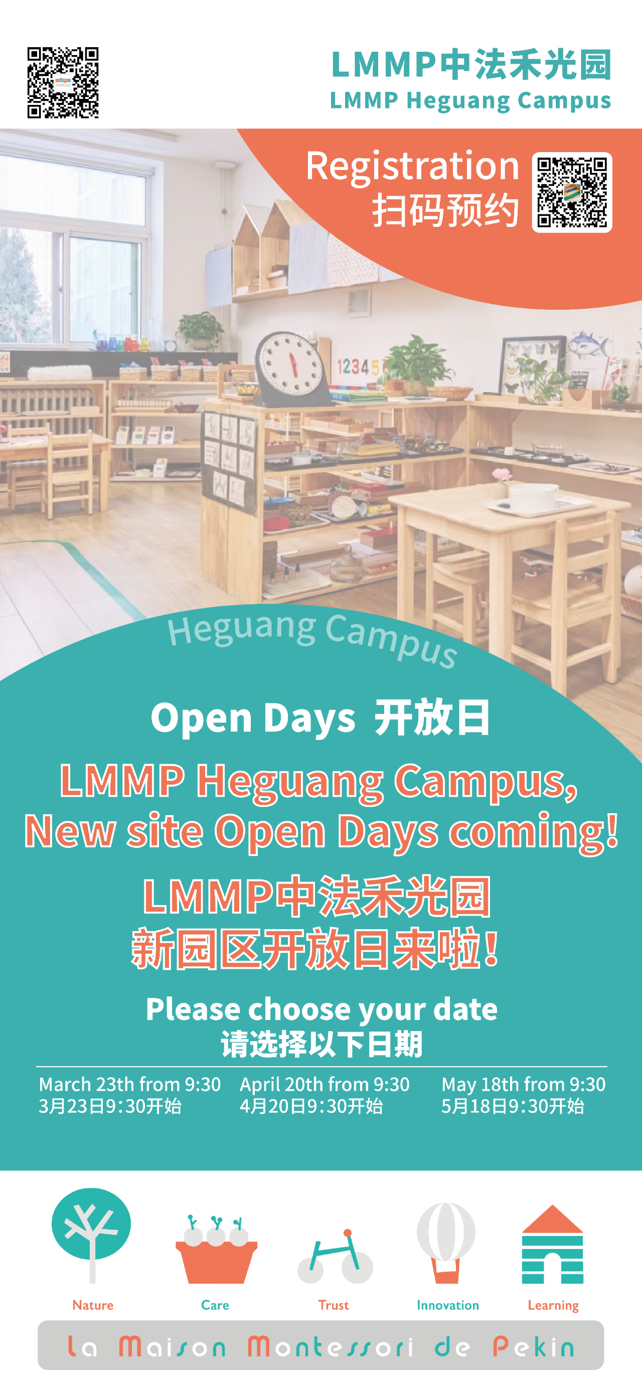 Open days are primarily designed to give parents a better understanding of the school and its educational philosophy. If you would like to bring your child along to the open day, at least two parents should attend; one parent can learn about the school through the presentation, to ensure the child feels safe while exploring the new environment, and the other parent (caregiver) can accompany the child to explore the Montessori activities arranged by the teacher in the classroom.