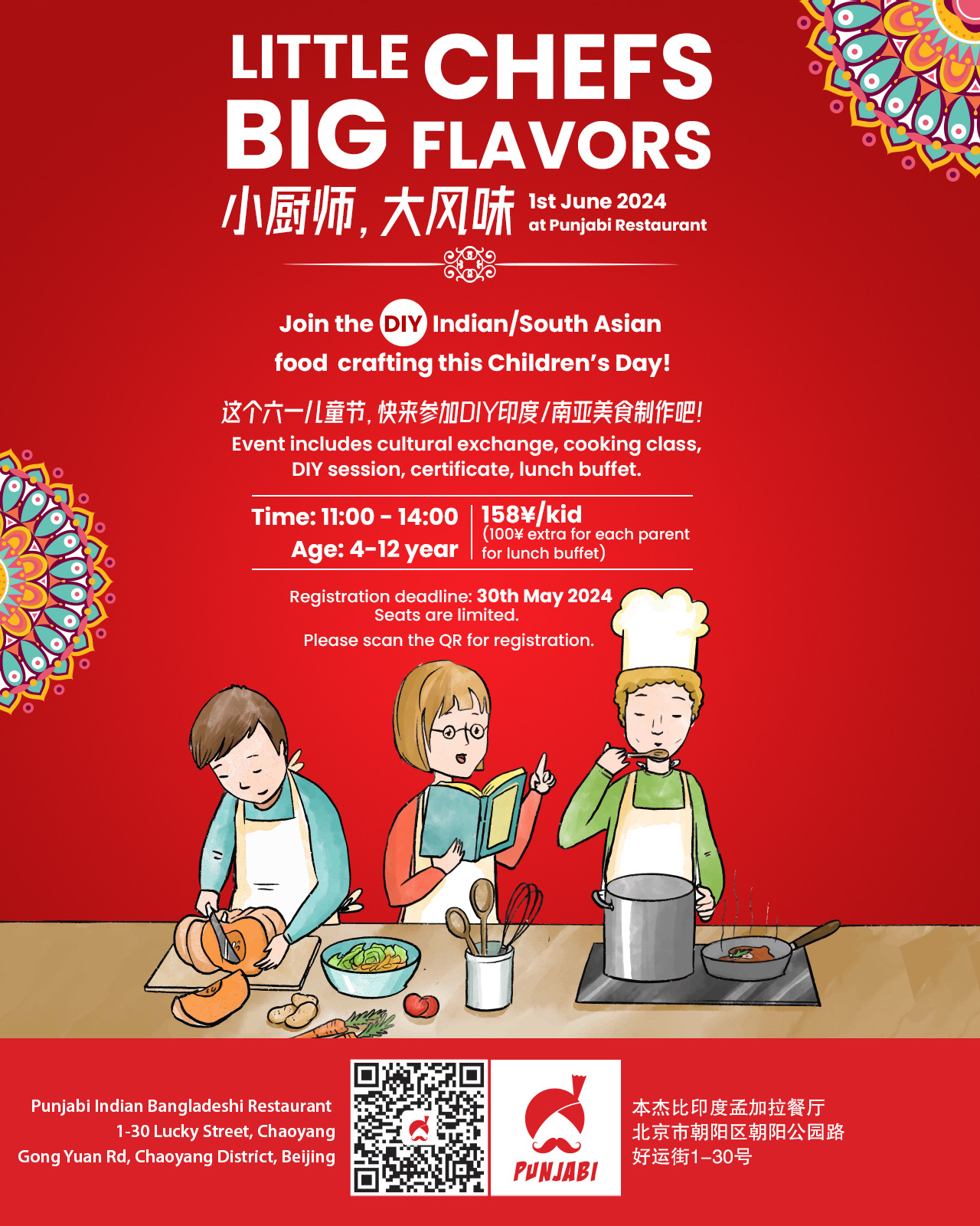 Join the fun at Punjabi Restaurant this Children’s Day – it will be fun, it will be delicious and it will be rewarding. Kids will get to make some yummy Indian/South Asian food and enjoy a lunch buffet. The event is suitable for kids 4-12 years old. Scan the QR code to sign up. Registration deadline is May 30.