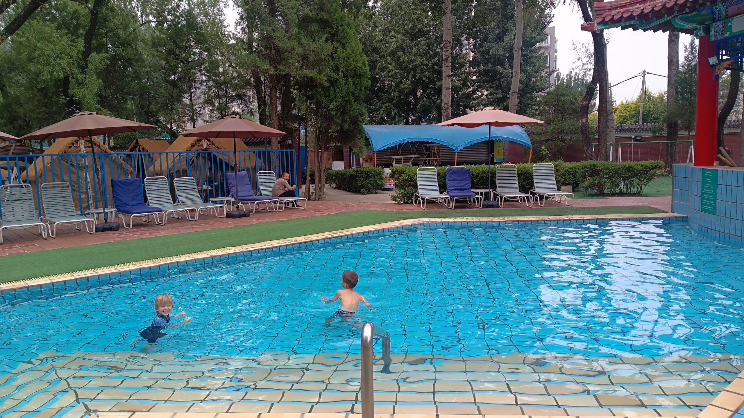 My go-to swimming pools are Guoce and Dynasty Garden; however, this time I wanted to explore another place that I had heard about: the Splash Recreation Club at CITIC Hotel Beijing Airport. All these pools are located in Shunyi a 45-minute Didi ride away, so we knew that getting there would take some time. As we are now a family of five, and we do not all fit in a regular-sized vehicle, seven-seaters are what we use for our daily commute. And these rides can get quite expensive for longer trips, so there was no point in driving out to Shunyi for only a few hours. So, we decided to check into the hotel and spend two days at the pool.