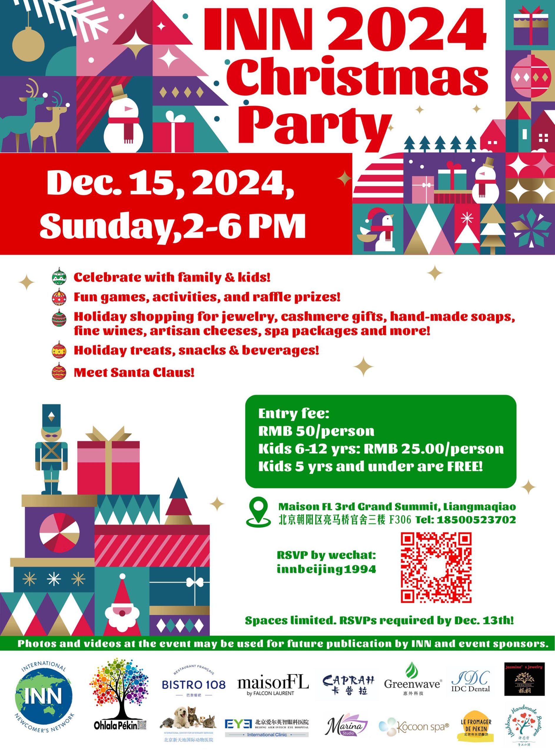 Celebrate the holidays with INN at a party that will be fun for the whole family! Enjoy hot chocolate, mulled wine and delicious treats. Shop holiday gifts of wines, artisanal cheeses, cashmere scarves and accessories, jewelry, hand-made soaps, spa packages, and so much more! Meet Santa Claus and enjoy fun games and activities for kids. There are more than RMB 20,000 in fabulous raffle prizes to be won! Space is limited. RSVPs are required by Dec 12! RSVP by WeChat: innbeijing1994