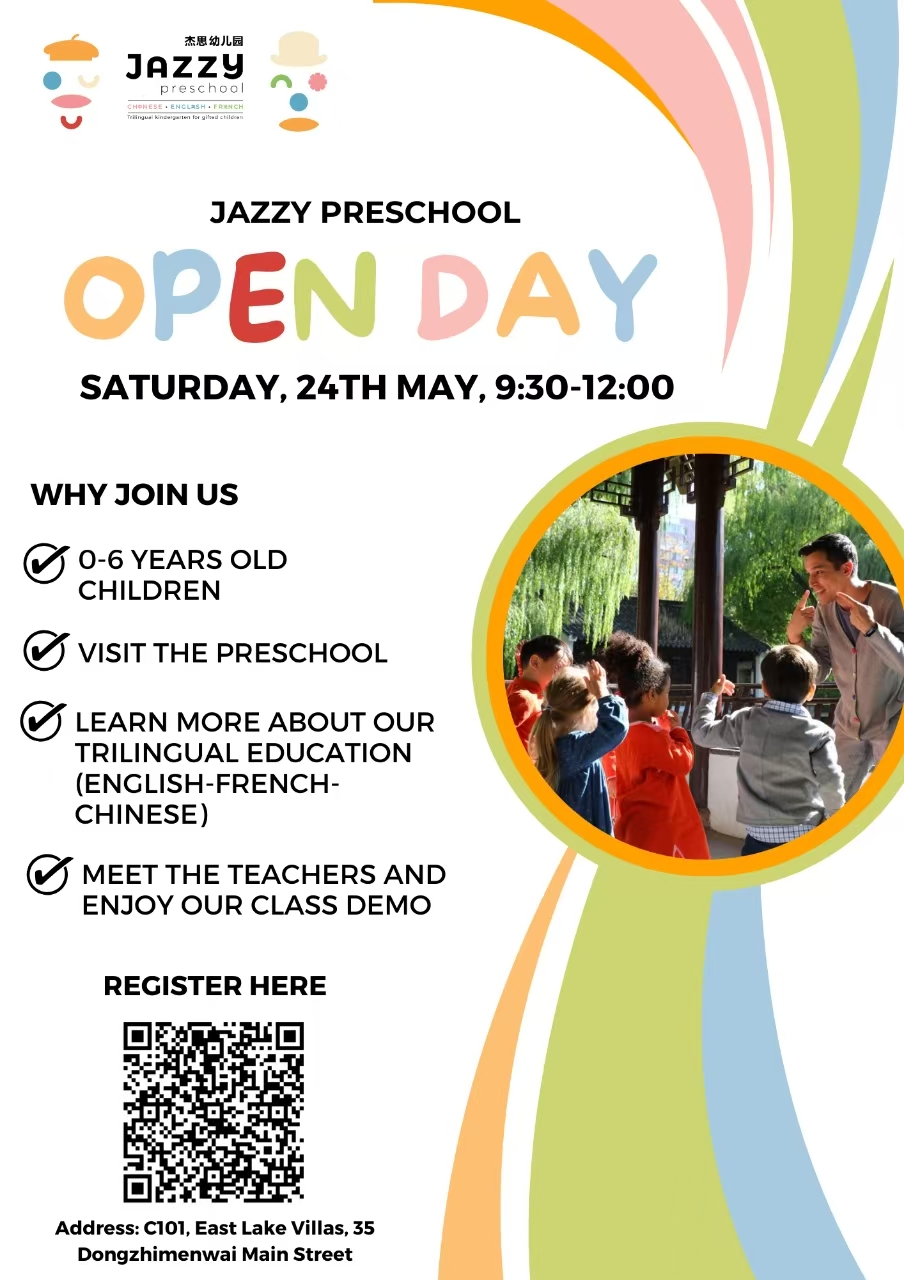 Are you looking for a kindergarten for your child from 1 to 6 years old? Come discover Jazzy Preschool’s unique, trilingual education in English, French, and Chinese on Sat, May 24, from 9.30am to noon during their open day (hour of the visit to be chosen below).