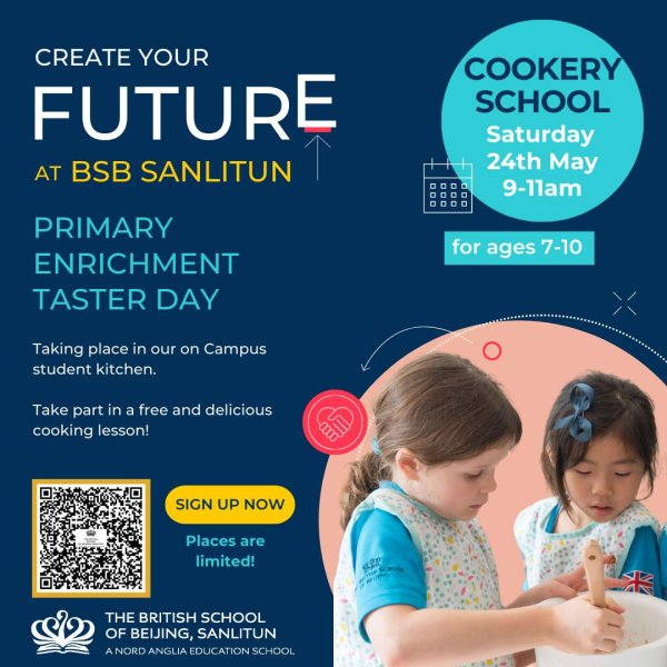 Join The British School of Beijing, Sanlitun for a fun and interactive Cookery School session as part of their Primary Enrichment Taster Day. Let your child explore the joy of cooking in their on-campus student kitchen while learning valuable skills and having fun!