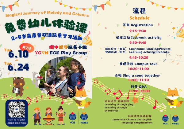 Dear parents, are you still worried about where to take your little ones? The YCYW Playgroup is here! The YCYW ECE Playgroup allows children to experience activities such as storybook reading, sensory training, outdoor exploration, crafts, and music introduction, making it fun for your little ones to play and learn even more joyfully!