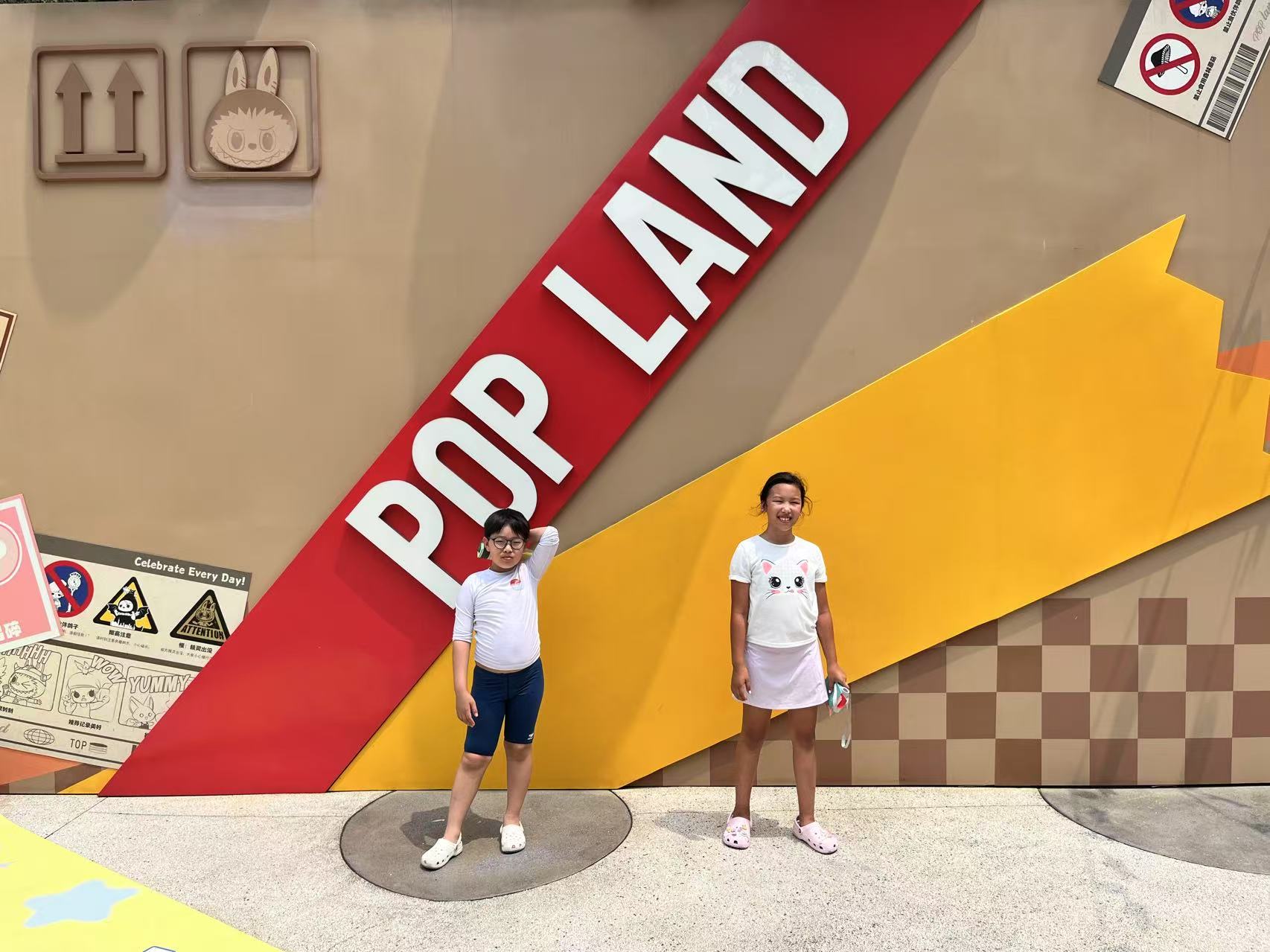 We also got a free Pop Land passport, which you can use to collect stamps at each station. Naomi enjoyed collecting the stamps because it was a fun scavenger hunt. There was a walk-through display inside a large mansion that she really enjoyed; it was a little Pop Mart show. It was themed, I think, on Puckies and Labubus. By the time we finished walking through the mansion, it was past lunchtime. So, we got some food inside Pop Land. It was not the best, and I didn’t enjoy it because the food seemed very bland and was very expensive, and I believe that Naomi did not enjoy it either. We ordered fish and chips, Caesar salad and pizza, and potato fries. I suggest you eat before you arrive here.