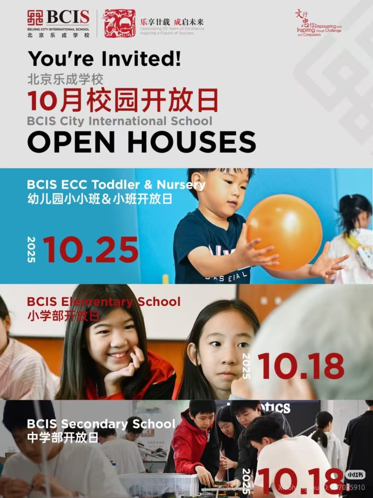 Discover the vibrant learning community at Beijing City International School (BCIS) through their upcoming open houses! Parents are invited to explore the school’s engaging programs, meet experienced educators, and learn about their innovative curriculum. Join them on Oct 25 (Sat) for ECC Toddler and Nursery.