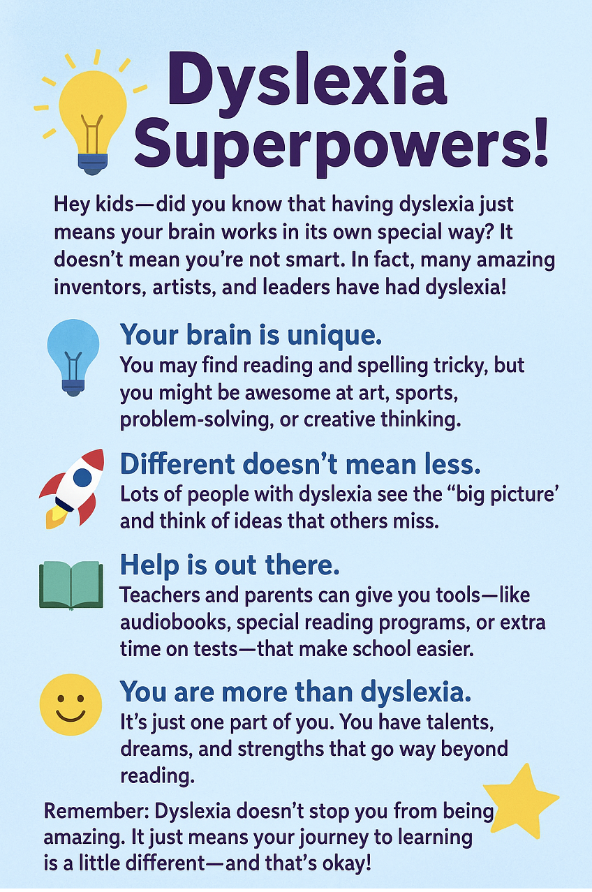 👉 Remember: Dyslexia doesn’t stop you from being amazing. It just means your journey to learning is a little different – and that’s okay!